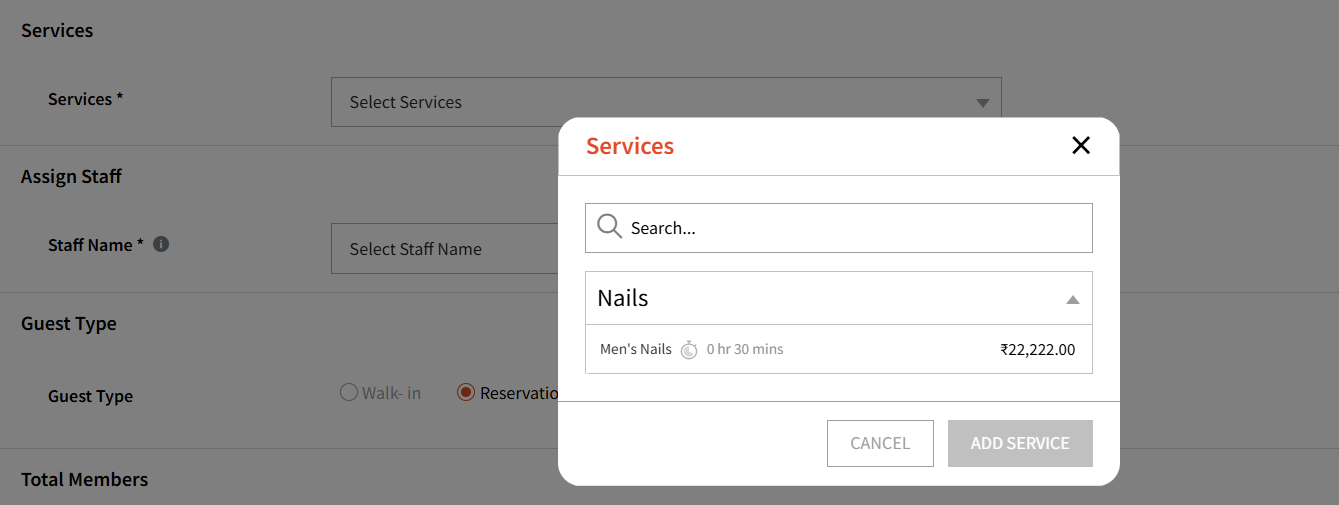 One reservation can also be assigned multiple services and staff members.
