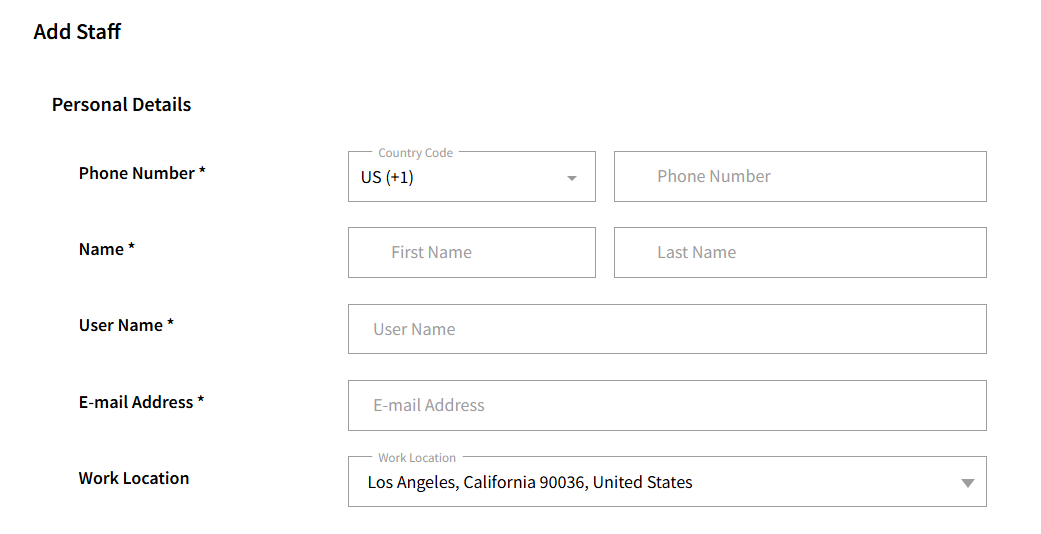 Work Location lets you pick the store you want this staff member to be added to. If you have multiple stores under one account, those stores will show here.