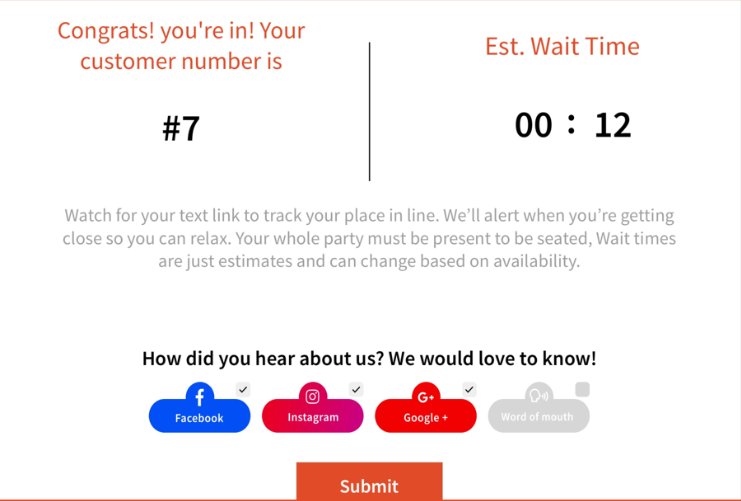- They also see their number in the waiting list along with the estimated wait time.