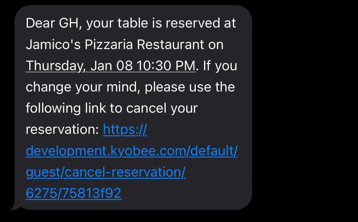The text message also contains a link that allows the guest to cancel their reservation if they choose to do so.