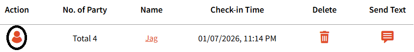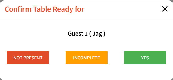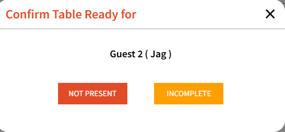 Not Present button - Can be selected if the party is not present when called for their table. Clicking this will show a thumbs down next to the guest name and this button can be clicked multiple times.