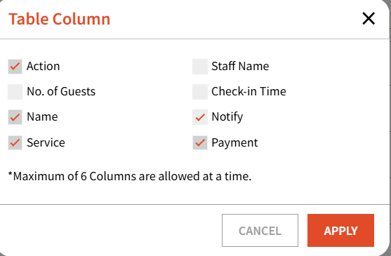 - User can select more filters based on choice for both Walk-in and Reservation column respectively.
