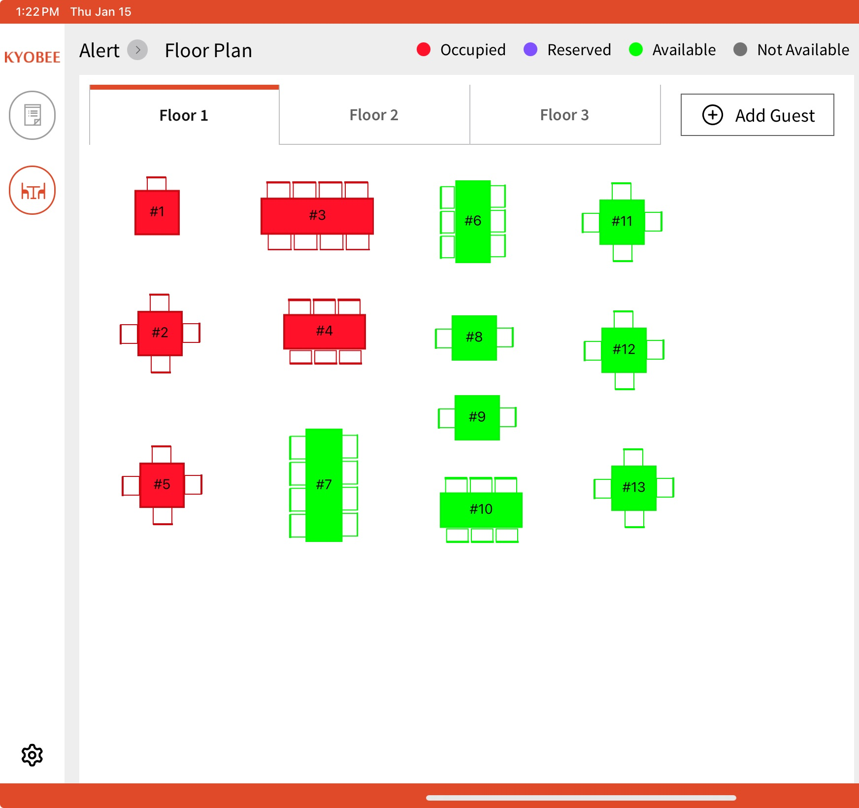 2. Reserved: You can choose which tables you wish to assign for only the 'Reservation' guests. Tables marked as 'Reserved' will only allow guests that are part of 'Reservation' to be assigned to these tables.