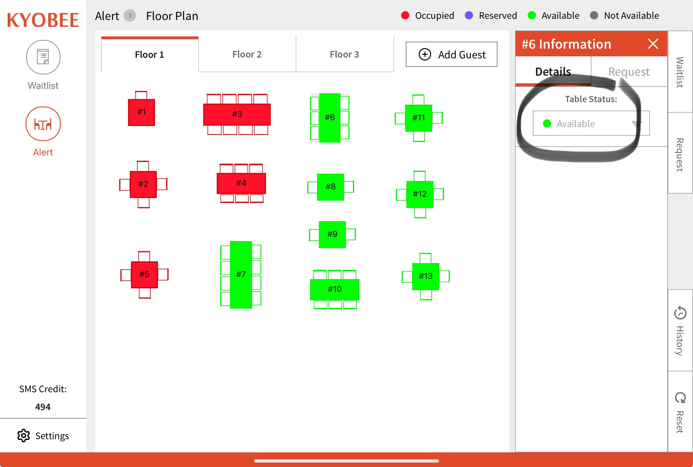 - Available: User can use this status to mark the table as open to be assigned to any guest.