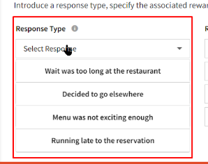 - User can click on any of the "Response Type" dropdown option; the user will see options as per their organization