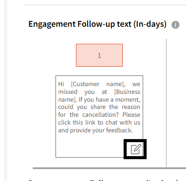 - Similarly, user should be able to edit the any of Re-Engagement " Follow-up text"