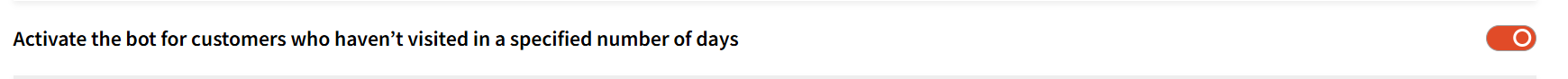 By keeping the toggle ON as shown below, you can select the days after which you would like the bot to reach out to customers who have not visited in those specific days.
