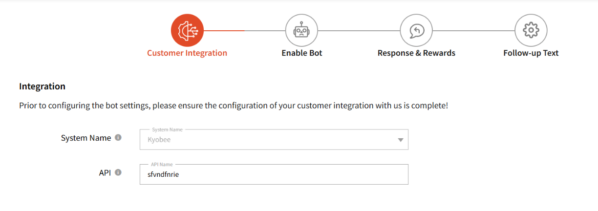 - User can enable the bot by clicking on the "Toggle Switch" and then clicking the " Next " button to be taken to the Response and Rewards screen and Click the " Back " button redirect to the Integration screen.