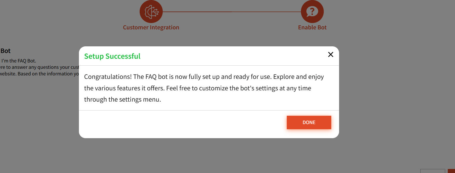 - User can move on to the Second step of setup - " Enable Bot "