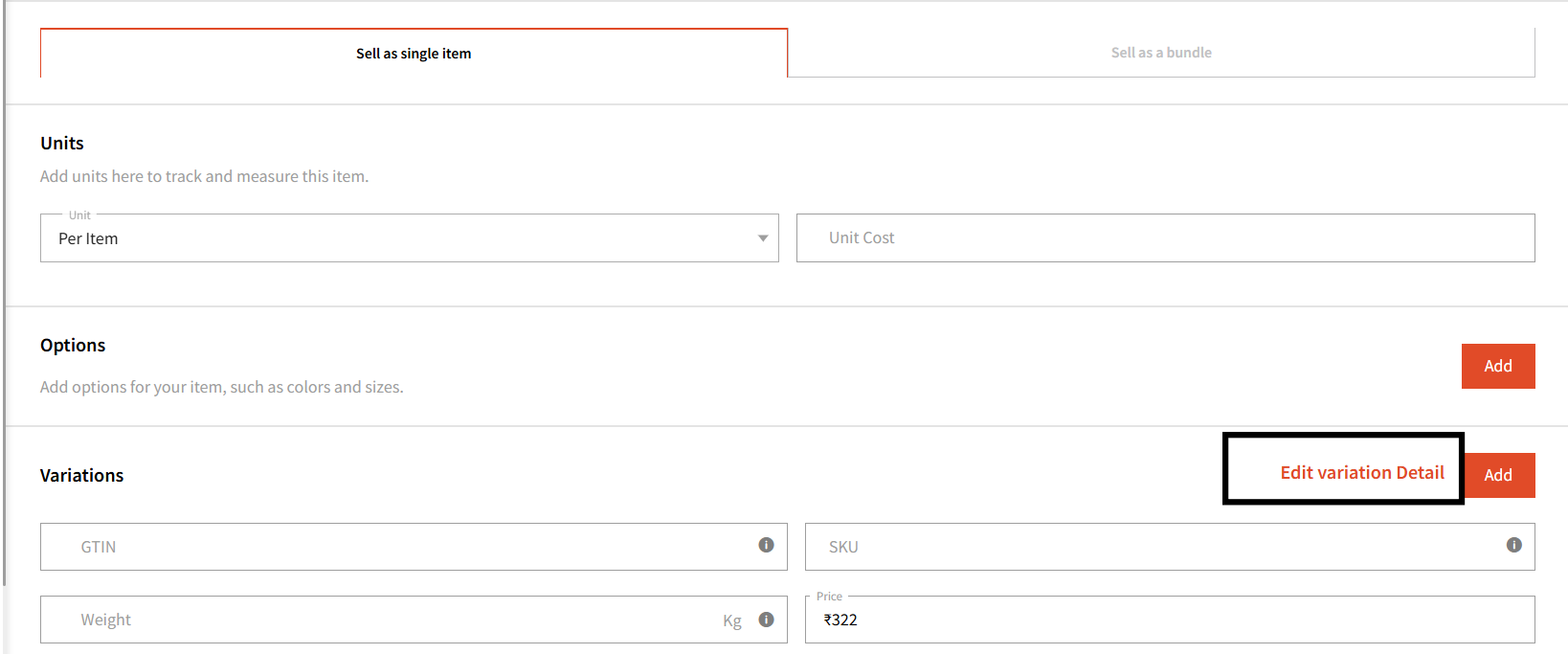Note: For 'Sell as Bundle', stock tracking won't be available.