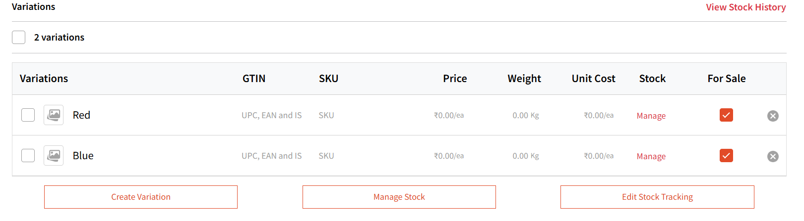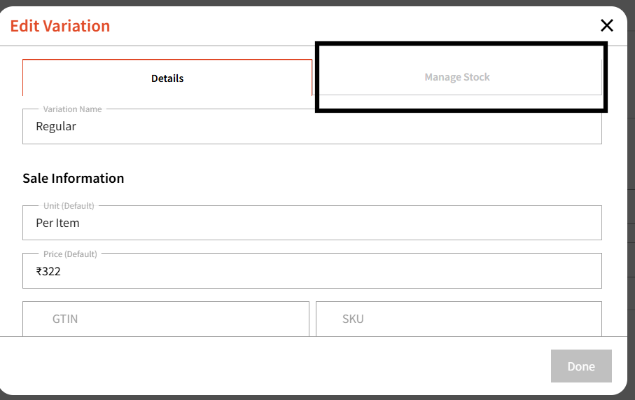 Then click 'Manage Stock'