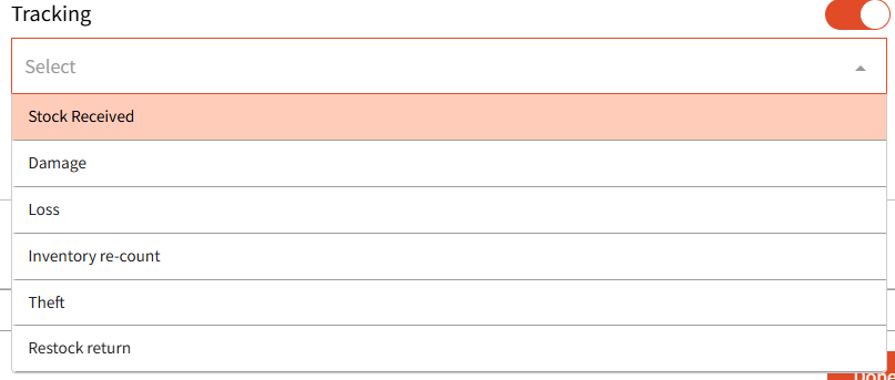 Note: Selecting Damage, Loss, Theft, and Restock Return will decrease your stock count.