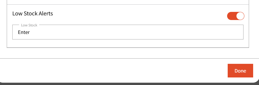 Here, you can set the Low Stock threshold at which you’d like to receive an alert. For example, if you set the low stock alert to 20 for this item and the current stock is 40, you’ll be notified once 20 units have been sold through the POS system.