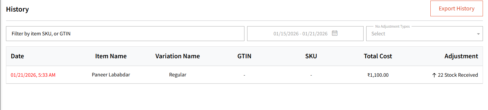 You can even filter by the stock reason and export history based on your filters.