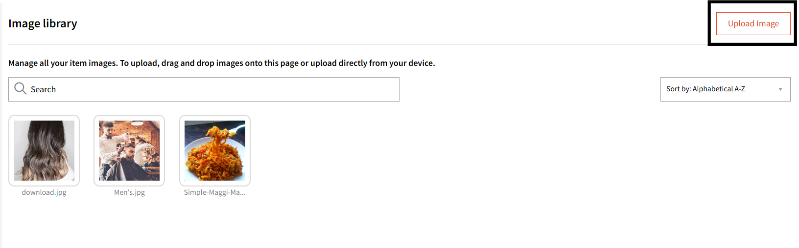 You can add images in the 'Image Library' option that you can use when creating items and/or services.