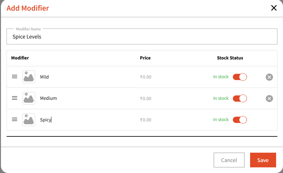 In 'New Modifier', you can add: Mild, Medium, Spicy