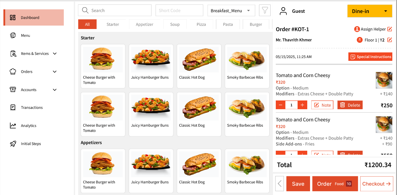 With our intuitive design, you can easily manage KOTs and Orders which is covered in the later articles.