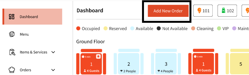 You can also start a new order from the dashboard screen without choosing a table: