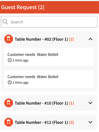 A bell icon will also show on top of tables that have active table requests: