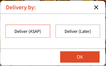 You can select these types when taking an order. Depending on the order type, you can manage orders differently. For example, Delivery, Pick-up and Take-out types will require you to select if the order is for now or for a later time.