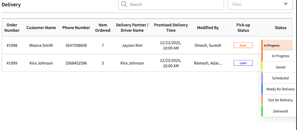 Payment status is also shown to help keep a track. Once checked out, the order will show for some time and then will be removed from this view.