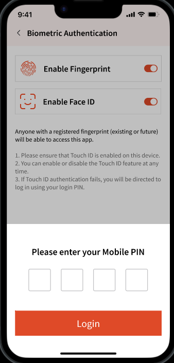Depending on the device, they can set up biometrics either using their FaceID or Fingerprint Scanner.