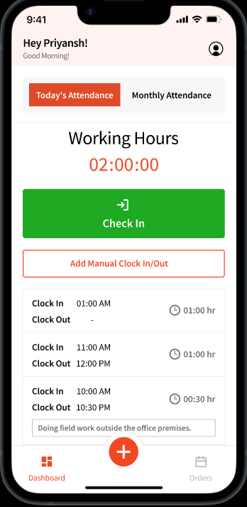User can also add the clock-in time manually using the 'Add Manual Clock-in/out' option.