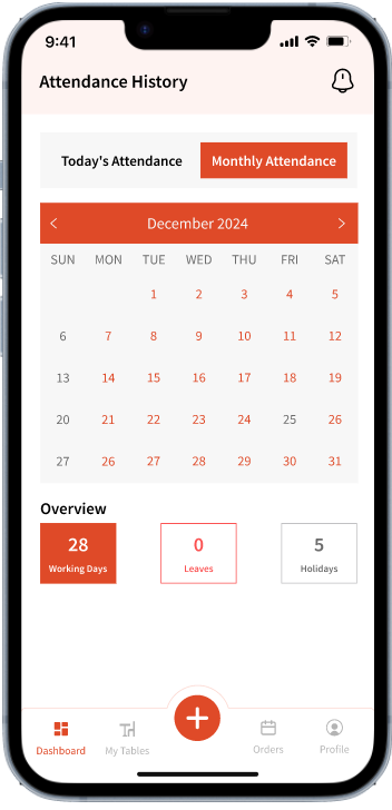 User can also look at a particular month by clicking the 'Monthly Attendance' tab.