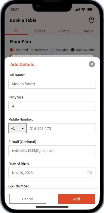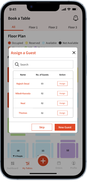 If the guest is not part of the Waitlist, you can simply add them using 'New Guest' which will ask you to enter some basic details of the guest.