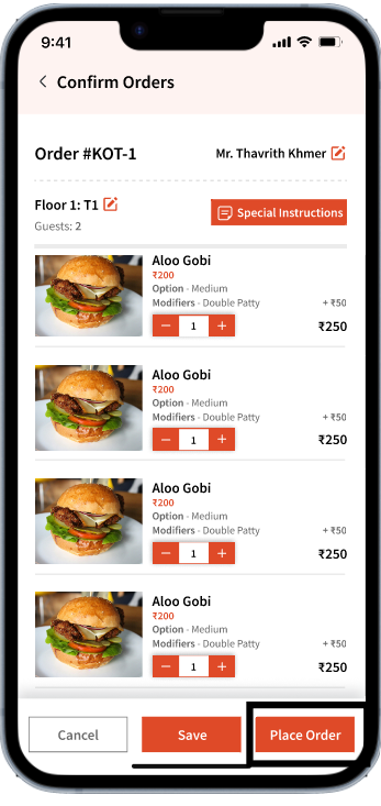 Once you are ready to submit the order to be prepared, you can simply hit 'Place Order'