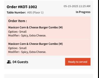 Note: Staff app only works for Dine-In Orders