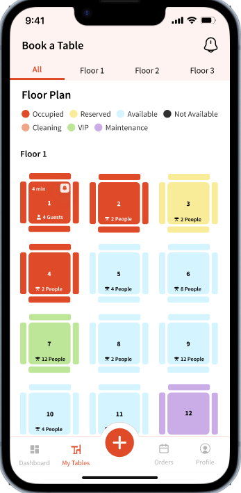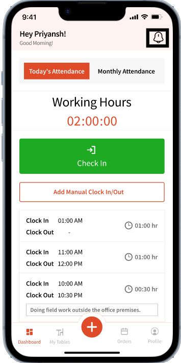 Any incoming table requests can be accessed using the bell icon located on the top right corner in the app: