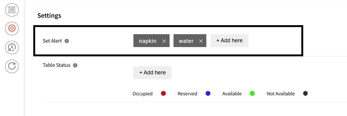 Please note: Guests cannot add custom requests. They can only submit requests that have been configured by the Admin in the Alert module. Once a table is assigned, guests receive a link that allows them to submit these requests. For example, in the screenshot below, the Admin has configured only Napkin and Water, so those are the only requests available to guests.